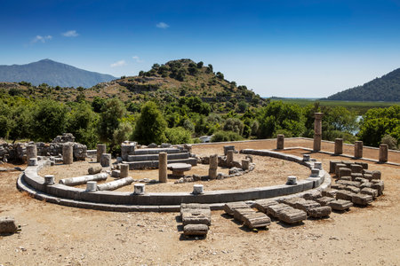 Butrint or Bouthroton - National Park in Albania in Ksamil, heritage archaeological site. Famous greek and later Roman city on the shore of a salt lake lagoon not far from Saranda town.
