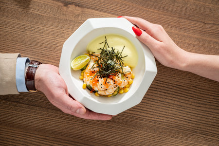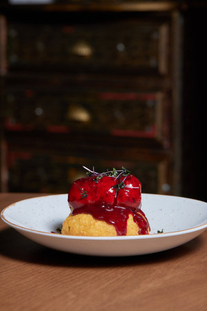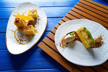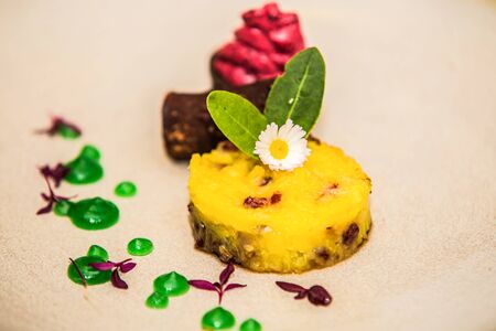 The food in the restaurant. Food styling and restaurant meal serving. Gourmet restaurant menu concept. Creative stylist restaurant
