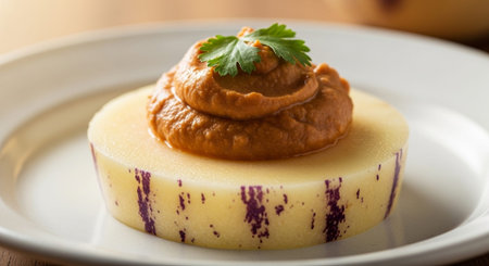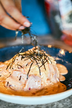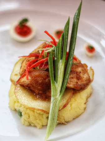 Beautiful decorated dish of international fusion cuisine