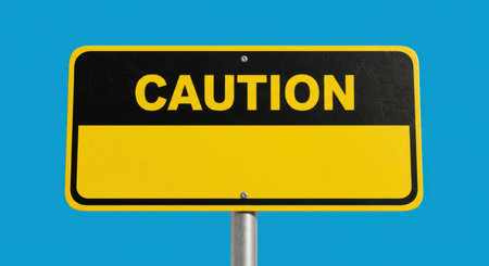 A bright yellow warning sign with a bold exclamation mark, placed on a clean black background.