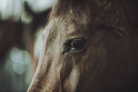 Horse Head and Eye Closeup. Equestrian Facility Theme.