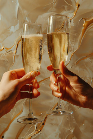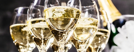 champagne French sparkling wine made from grapes banner copy space background poster greeting card, happy birthday new year, alcohol hands toasting bubble celebrate luxury