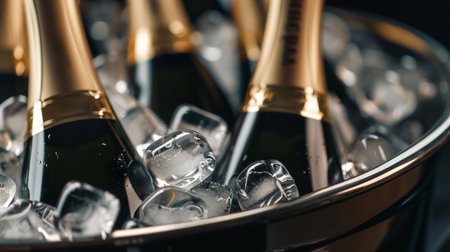 Premium Champagne Bottles Chilled on Ice against a deep black backdrop AI generated