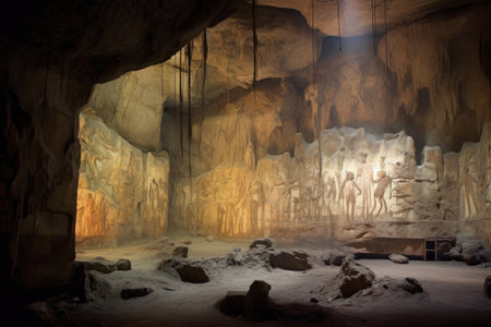 faded cave murals illuminated by torchlight, created with generative ai