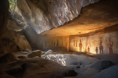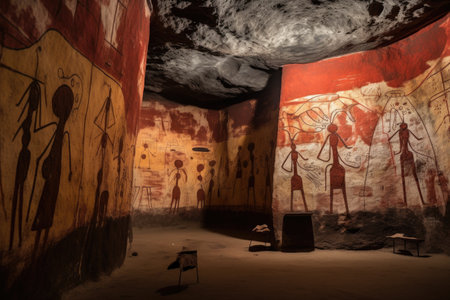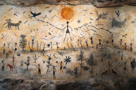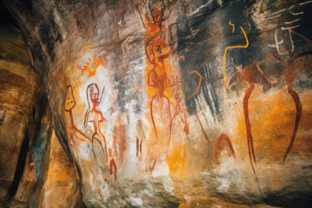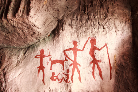 Old archeology cave drawings in a cave
