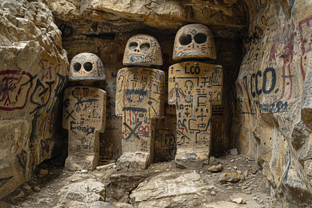 Ancient hieroglyphs carved on the wall of the cave.