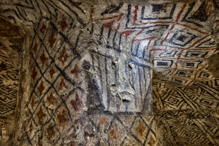 painted ancient burial chamber interior in Tierradentro Colombia