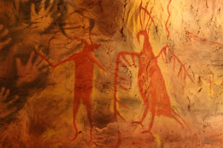 Reproduction of a prehistoric cave painting showing