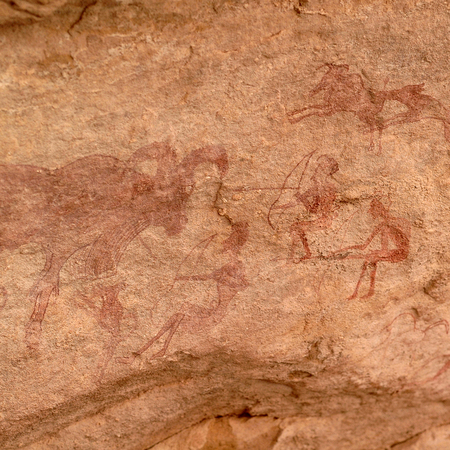 Ubari desert, Libya - May 05, 2002 : Petroglyphs in the Sahara