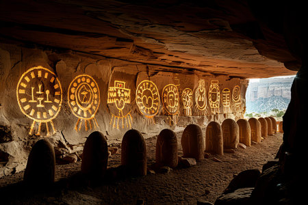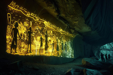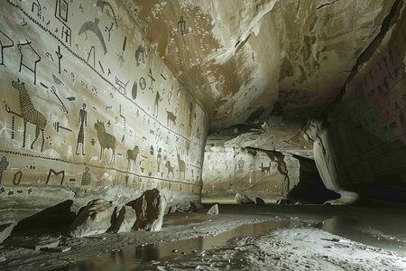Ancient hieroglyphs on the walls of the cave.