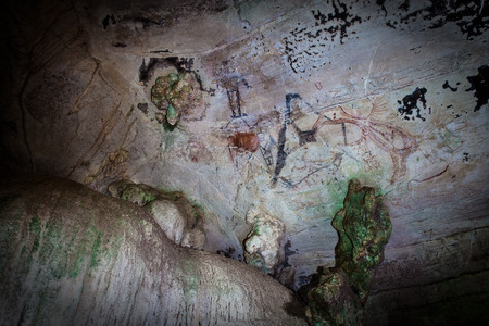 Prehistoric paintings on a cave wall, Phang Nga Bay, Thailand