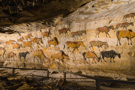Ancient cave paintings on the walls of the cave. The cave is one of the most beautiful caves in the world.
