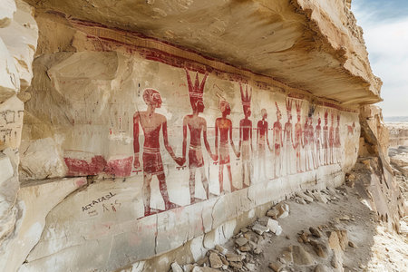Egyptian hieroglyphs on the walls of a cave.