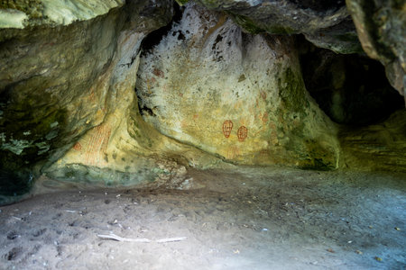 Prehistoric cave paintings over 3,000 – 5,000 years Tham Pee Hua To, Ao Luek Krabi THAILAND