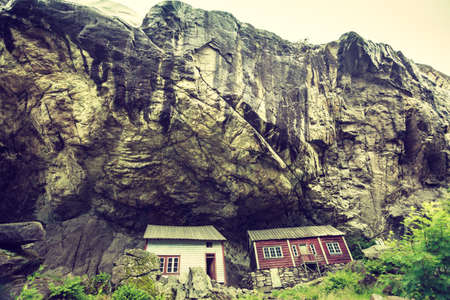 The Helleren houses in Jossingfjord along road 44 between Egersund and Flekkefjord, Sokndal municipality, Norway.