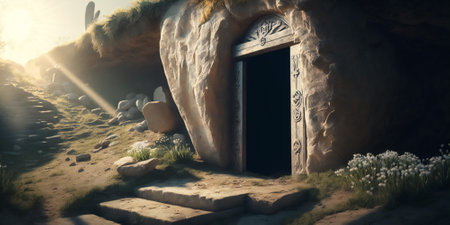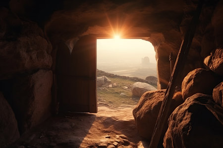 Christ is risen, view from inside the tomb Generative ai