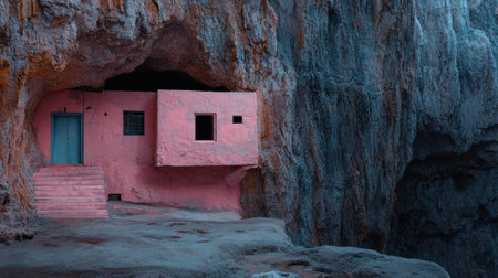 A unique pink cave house built into a cliffside.