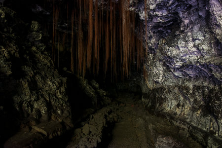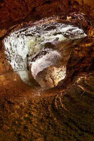 Volcanic cave gallery in Terceira island. Azores. Gruta do Natal. Vertical
