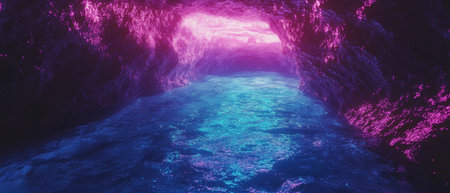 Fantastic illuminated cave with light in the dark. 3d rendering