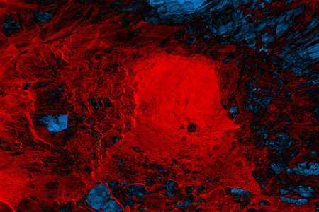 Colorful walls of the natural volcanic cave tunnel, lava formations under the mountains of Madeira island. Sao Vicence, Portugal.