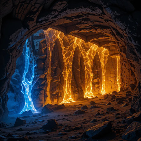 A mysterious underground world decorated with stunning mineral formations and whispers of ancient tales
