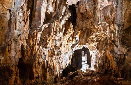 Interior of the large hall of old Karain cave, hidden in Mediterranean region. Confirms human habitation since the early Paleolithic age between 150,000 and 200,000 years ago.Yagca