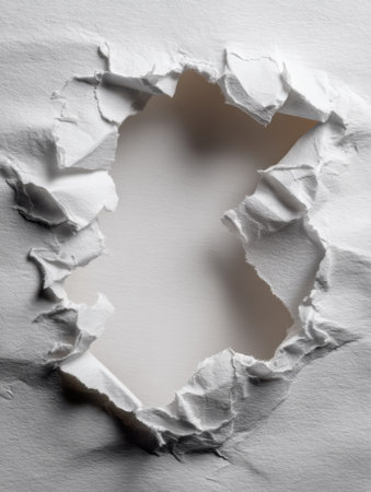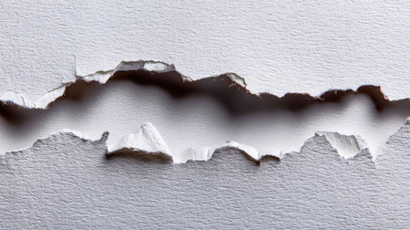 A sheet of paper with a jagged tear reveals a smooth, blurred surface behind it, creating an interesting contrast and visual texture.
