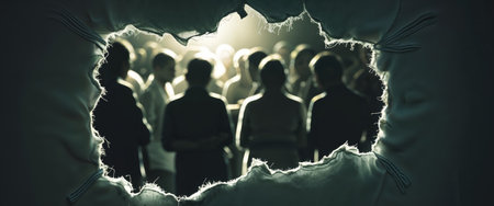 AI Generated. Reflection of a gathering seen through a tear in a dark setting conveying deep emotions and life struggles