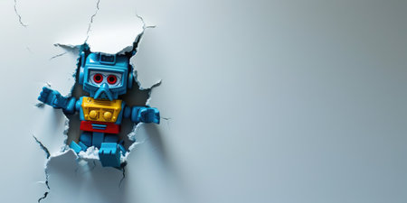 Close up view picture of the hollow white hole on the the wall that show the robot stay inside the wall that has been made from some material yet still can be break to look through other side. AIGX03.