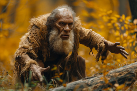 Neanderthal man in the forest, uncivilized, unintelligent, or uncouth