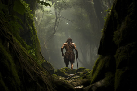 Chronicles of prehistoric life: primitive man, delving into the mysteries of early human existence, tools, culture, and survival in the ancient epochs of our evolutionary past.