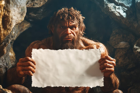 Primitive man embracing technology caveman with smartphone symbolizing technological advancement