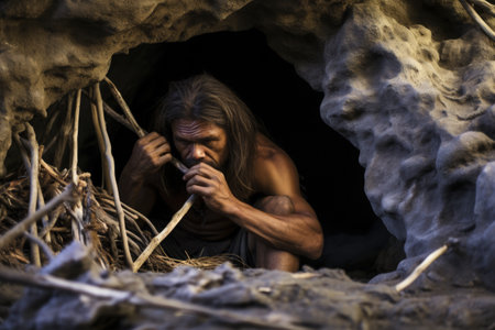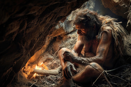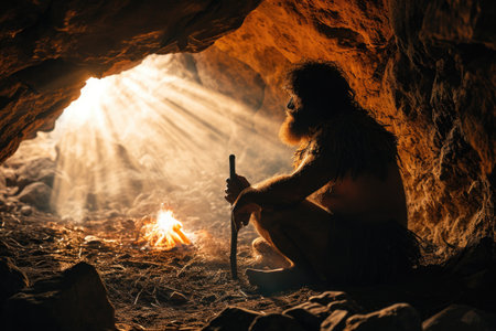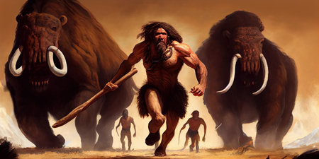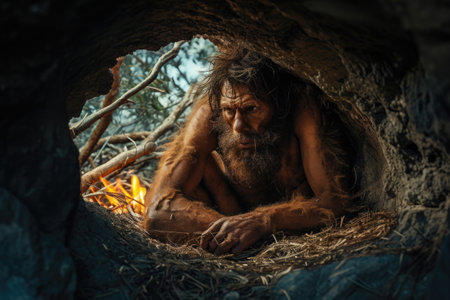 Chronicles of prehistoric life: primitive man, delving into the mysteries of early human existence, tools, culture, and survival in the ancient epochs of our evolutionary past.