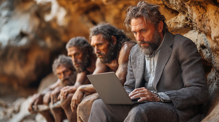 Prehistoric man, evolution science biology, man civilization, homo sapiens ape, stone era period, old hair wild nature, neanderthal, prehistory, monkey