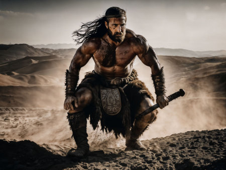 photo of ancient barbarian male warrior stained , generative AI