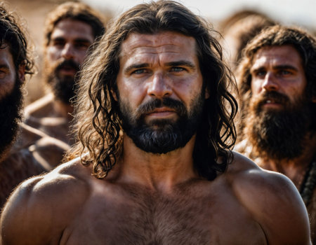 photo of group of strong caveman gang, generative AI