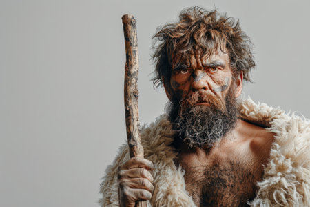 A caveman with a primitive weapon AI generated