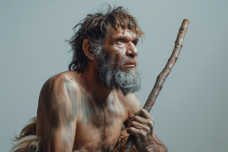 Primitive man with stick, evolution concept