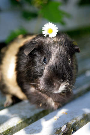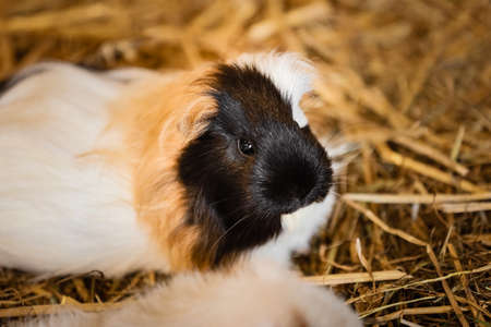 Beautiful guinea pig staring at camera and posing. Domestic guinea pig