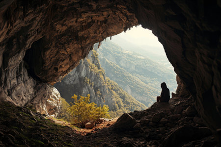 A hermit's peaceful life in the quiet isolation of a mountain cave AI generated