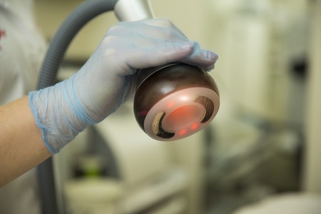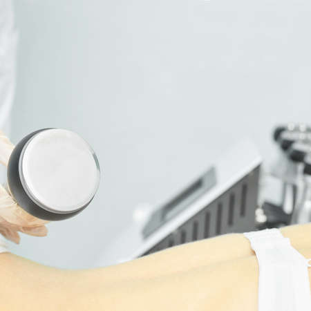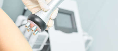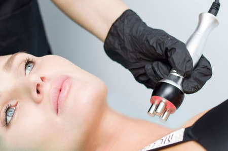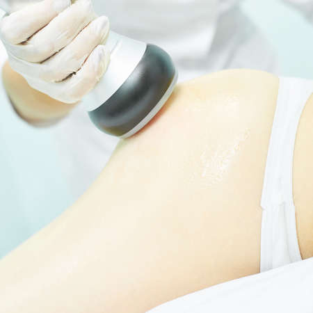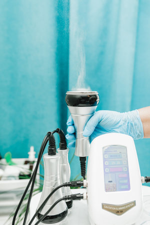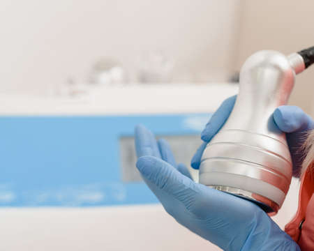 Cosmetic procedures. Modern equipment. Ultrasonic cavitation. Light background.