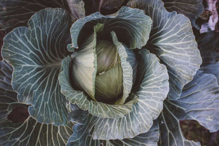 Cabbage grow in the garden. agriculture. Healthy and healthy food for humans. The cultivation of cabbage. top view