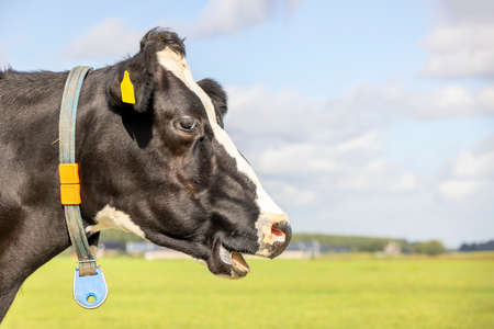 Close-up of a funny cow on on farmland in the Netherlands
