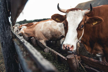 Cows on the form. Milk, meat production. Household animals.