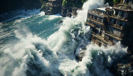 Rapid hydroelectric power generation sprays beauty in nature liquid motion generated by artificial intelligence