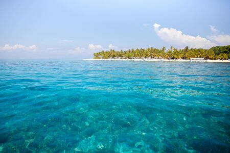 Tropical island view from the sea. Turquoise sea water.