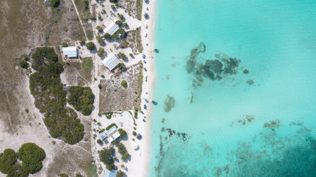 Drone shot of coastal area, beach and the ocean at Grand Turk in Caribbean