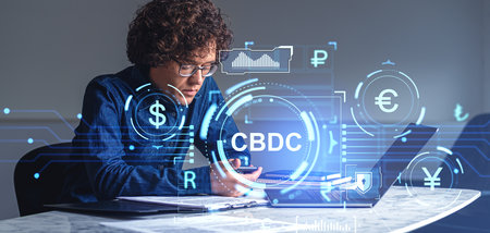CBDC Central Bank Digital Currency. the digital currency of the Central Bank and transactions in different currencies. Financial technology exchange, money, and digital asset.