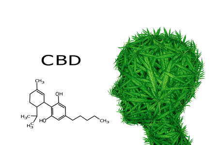 marijuana buds on white background with cbd illustration