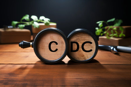 Wooden toy blocks spelling the word CDB on grey background.